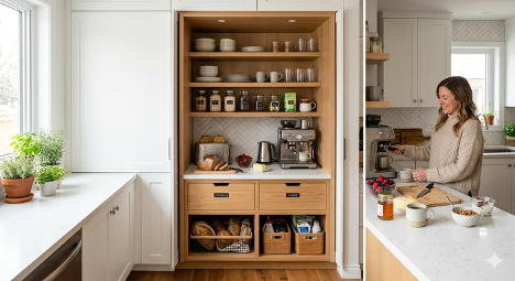 Reduced Visual Clutter: By housing bulky appliances and pantry staples behind closed doors, you keep your countertops clear and your kitchen looking "Instagram-ready".